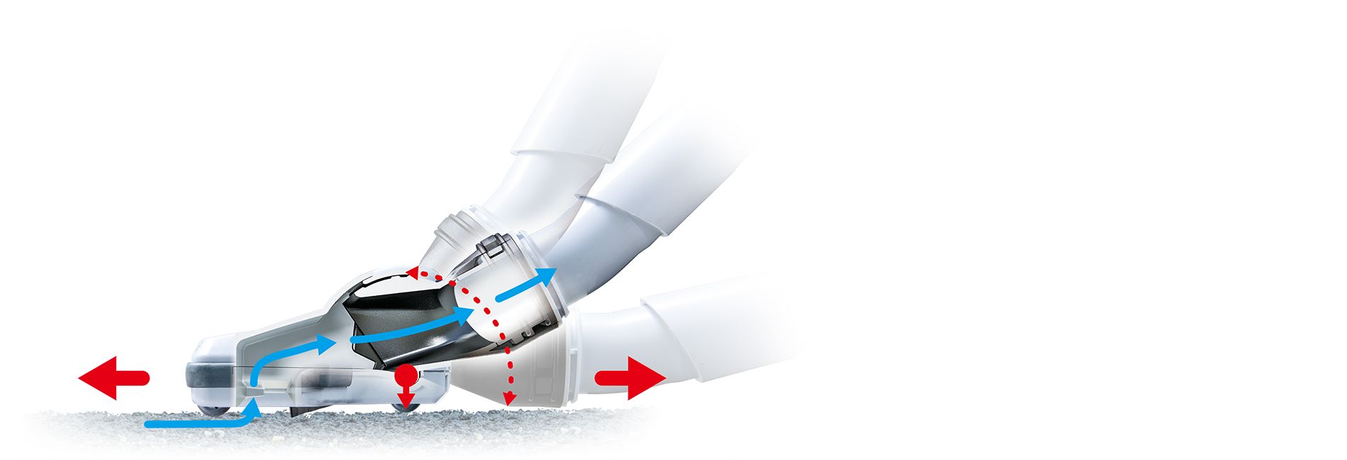 Redesigned structure reduces the resistance caused by suction, providing smooth running. Redesigned inside air ow path reduces the noise made inside the nozzle.