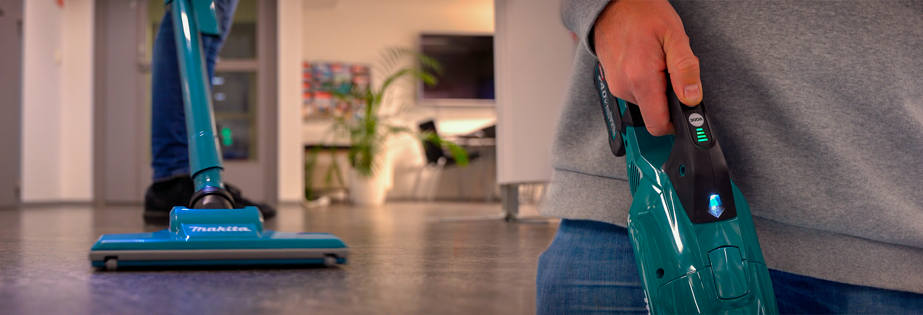 Makita´s CL002G has compact and lightweight design. With 2,5 Ah battery the continuous runtime is up to 80 minutes. The Cordless cleaner has maximum suction power up to 125 W. Different kind of nozzles makes the cleaning easier even in tight places.