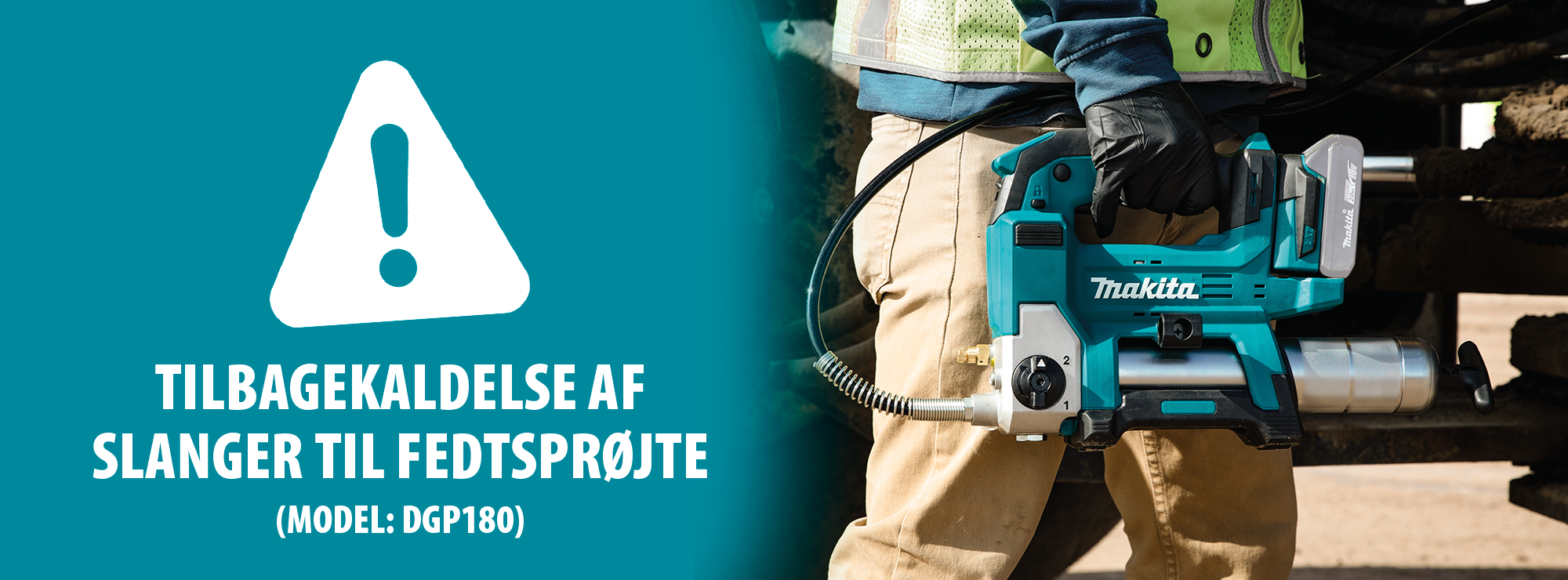Vi udskifter smøreslangerne, fordi der i visse brugstilfælde kan opstå brud på slangen. Det sker, hvis slangens spids bukkes gentagne gange, f.eks. når der smøres svært tilgængelige nipler. Det kan give anledning til små brud på slangen og lækage af fedt. Det kan i visse situationer medføre skade på operatøren. For at fjerne risikoen har Makita valgt at gennemføre en udskiftning.